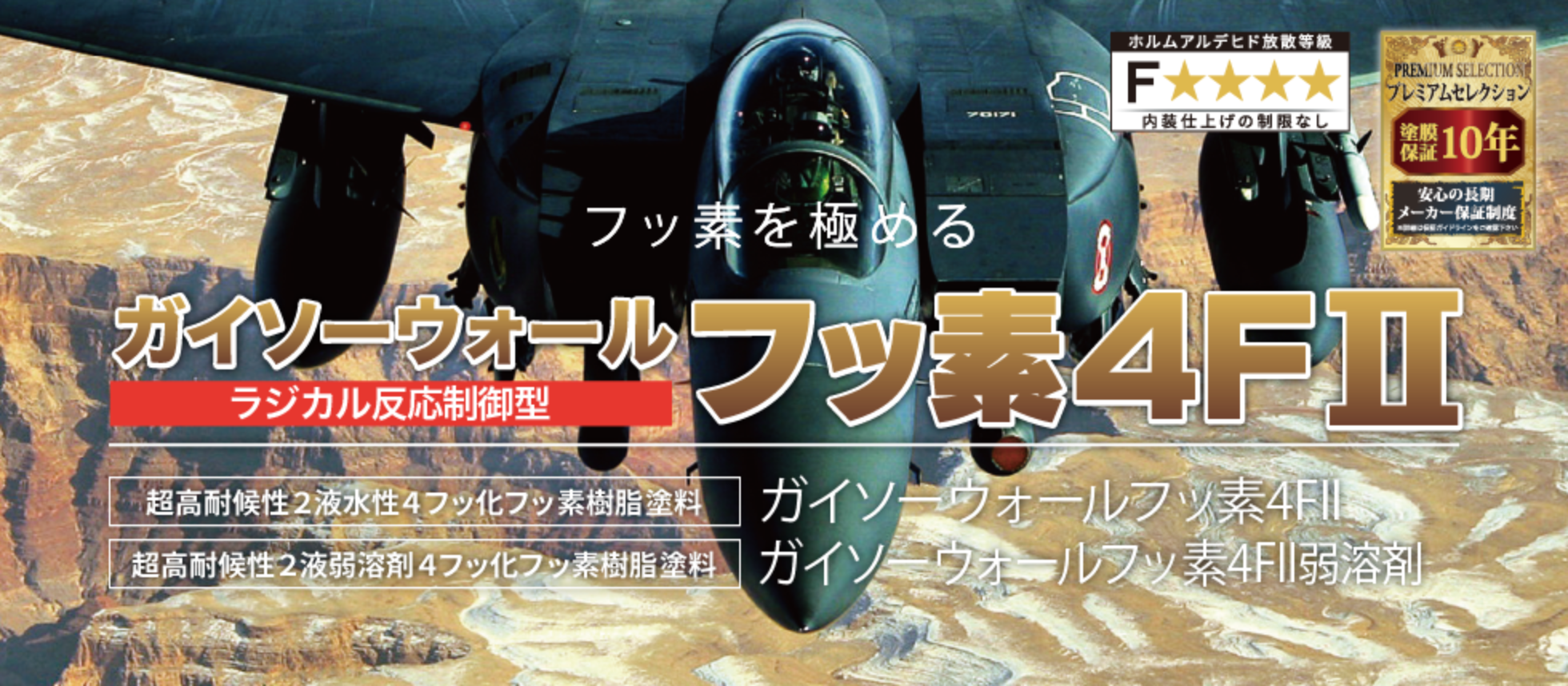 「ガイソーウォールフッ素4FII」は、フッ素樹脂系の最上級塗料。